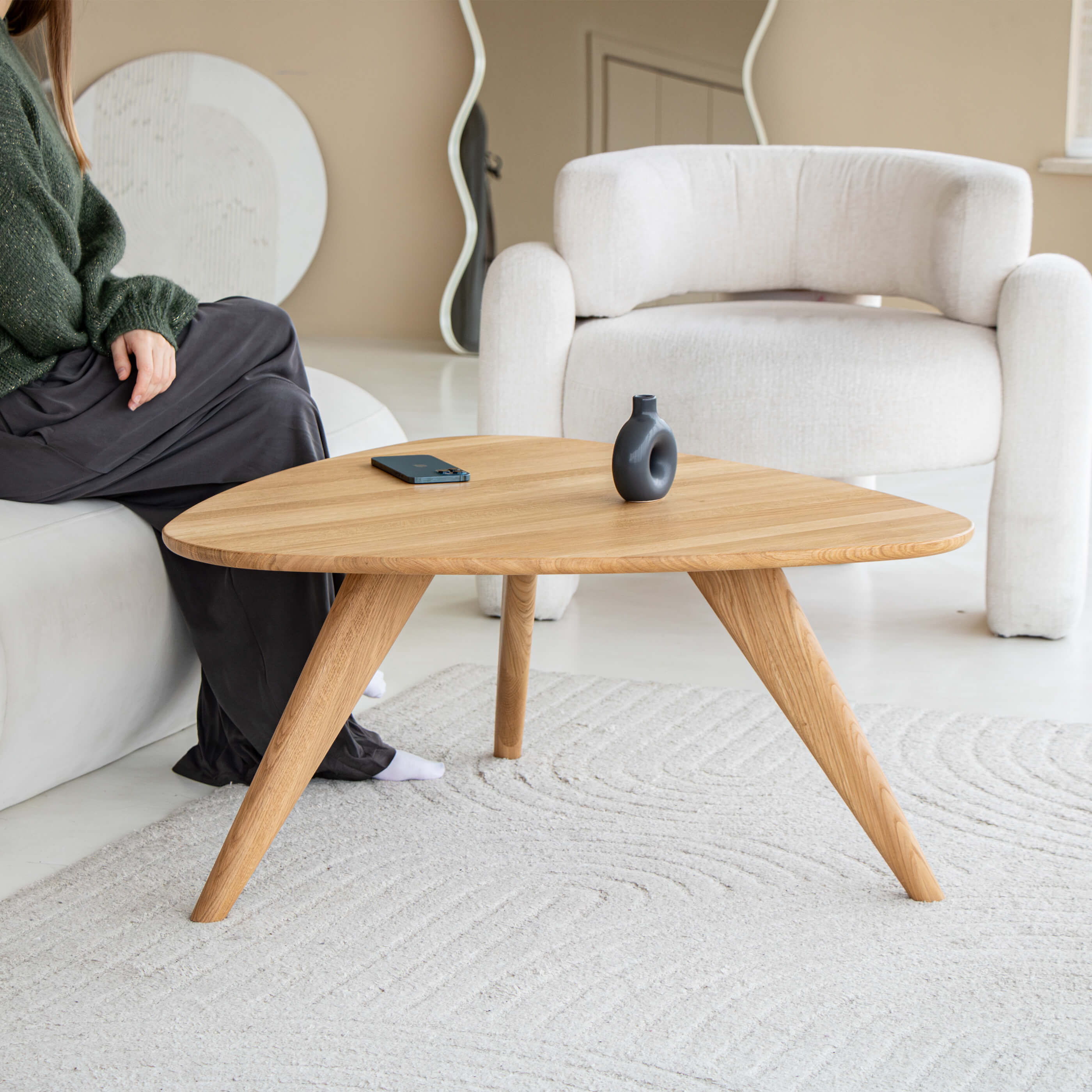 Modern coffee table made of natural solid oak