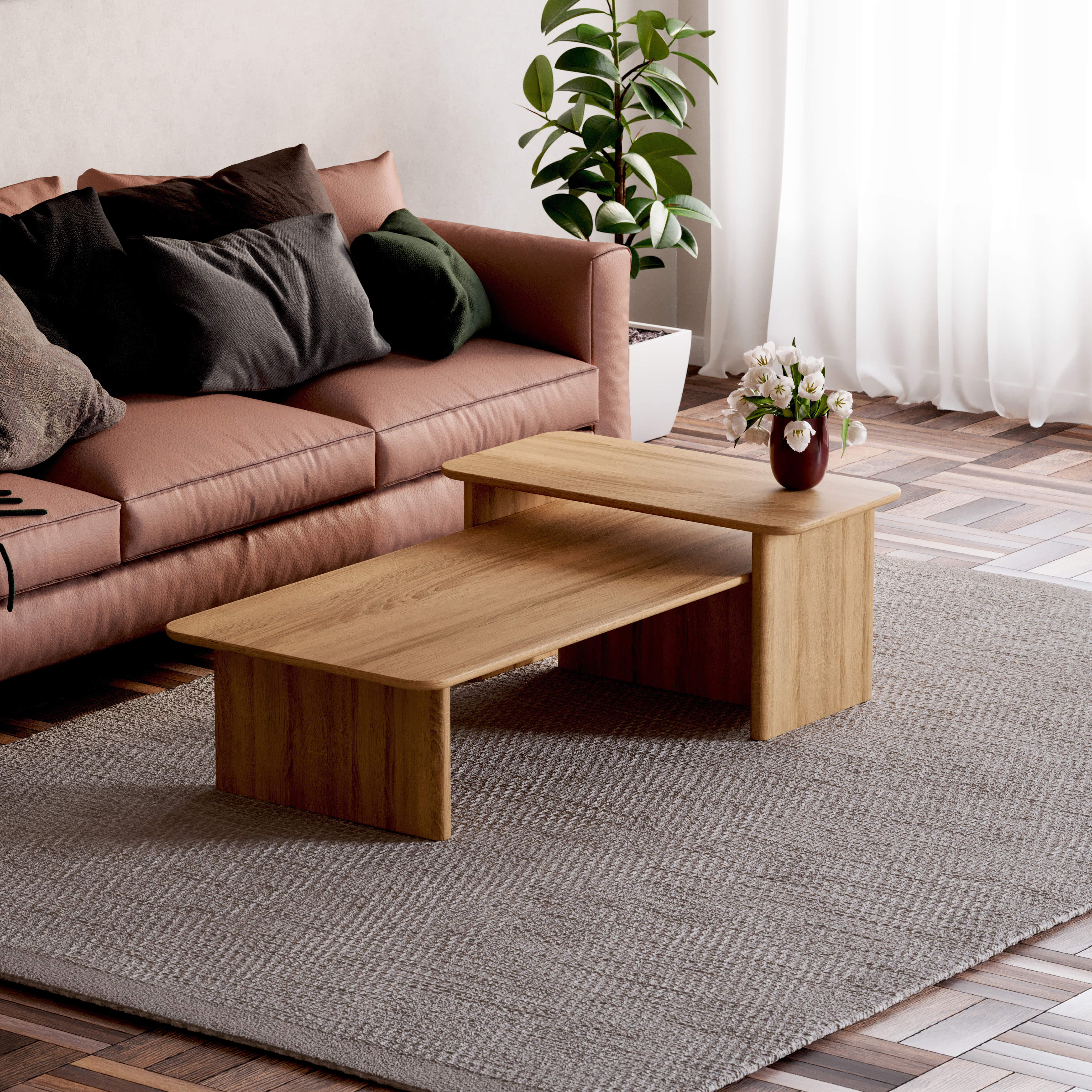 Modern coffee table made of natural solid oak
